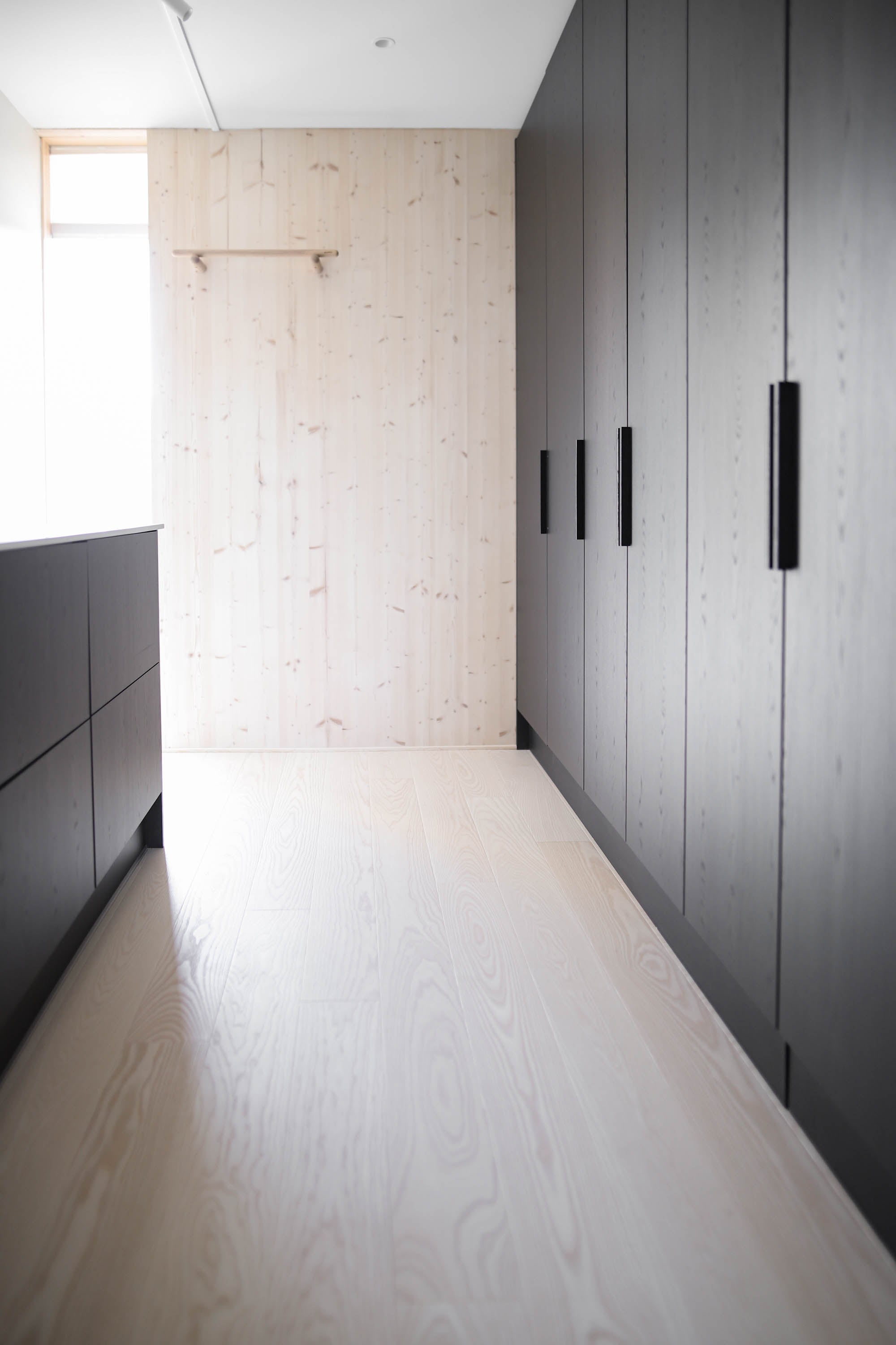 Vire-vaatehuoneeseen on yhdistetty myös vesipiste, mikä ei ole yleistä vaatehuoneissa, mutta voi olla hyvin käytännöllinen ratkaisu myös vaatehuoneeseen.